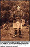 The weather again played havoc with the extras; since the previous shooting had been done without rain falling, continuity demanded that subsequent shooting also be done without rainfall. A small group of "G" Company extras, only 4 cadre and 11 non-cadre, arrived on the set at 3:15 pm. After a march to the set, where rain and hail forced everyone into dugouts in the fully developed area of the trenches nearest the cameras, the extras marched back to the mess tent at 8:30 pm for "lunch." The rest of the extras arrived at that time. One of the film company, a bespectacled redhead named Cheryl, had Happy Birthday sung to her by the extras. This author took the opportunity to also play it on his bagpipes, for which he was rewarded with a peck on the cheek, inspiring a certain degree of jealousy among the rest of the extras. Like soldiers in a war, the extras found themselves deprived of feminine company during their sojourn on the set, due both to the absence of women while at work, and the short length of time they had to spend away from the set.