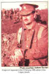 film. The author was lucky enough, however, to be on hand for a closeup of the troops as Zero Hour struck. Captain McAdam, unfortunately, was not as lucky, having fallen ill and been replaced for two days by one of the other extras of "G" Company. The scene was laboriously set up, with measurements being taken, and the posing of the officer, incorporating his whistle, pocket watch, and pistol. The scene is visible in the film, though it goes by very quickly. |